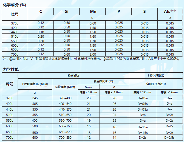 大梁是載貨車主要的承載部件,幾乎承載著貨物全部的重量,大梁的質(zhì)量影響整車的使用壽命與行車安全,制造??汽車大梁一般采用沖壓成型工藝,其變形方式以彎曲為主,因此大梁板對成型性要求較高。普陽可生產(chǎn)370L、420L、?440L、510L、550L、600L、650L、700L汽車大梁鋼。產(chǎn)品具有良好的強(qiáng)韌性、耐疲勞性和冷成型性。