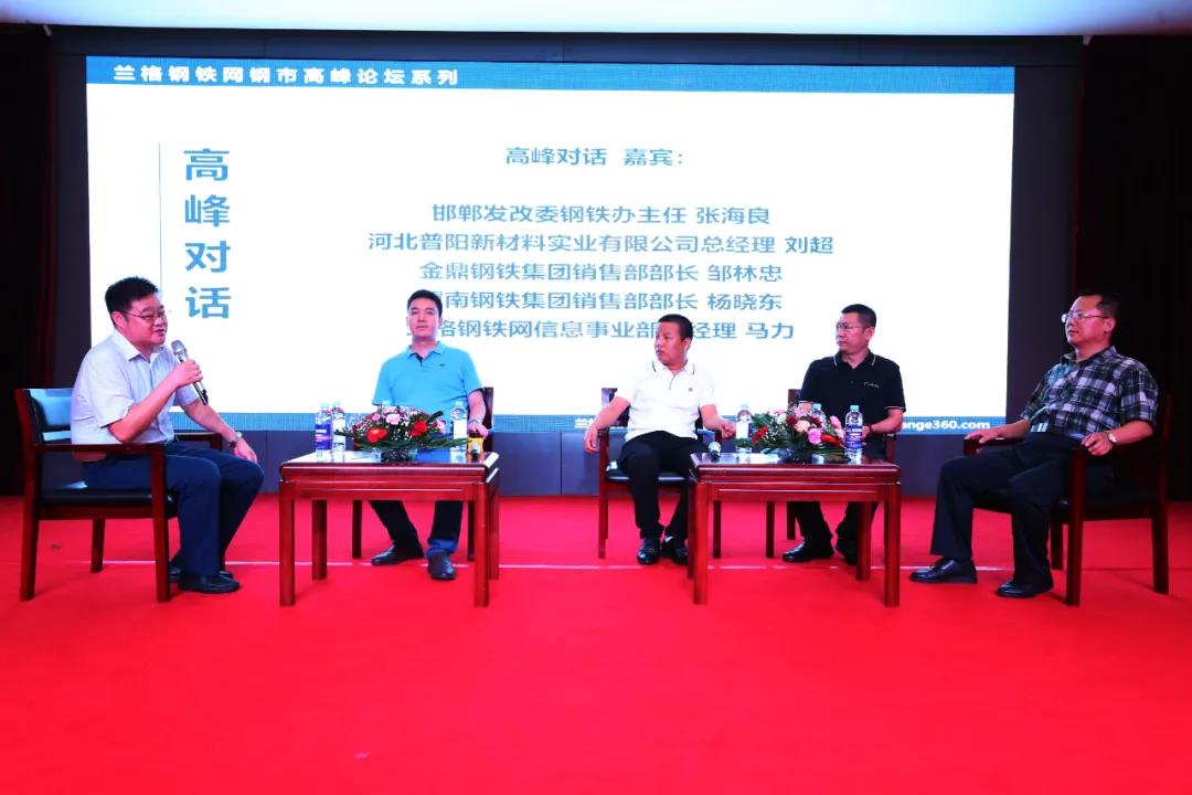 在蘭格鋼鐵信息事業(yè)部總經(jīng)理馬力主持的高峰對話環(huán)節(jié),邯鄲發(fā)改委鋼鐵辦主任張海良、河北普陽新材料實業(yè)有限公司總經(jīng)理劉超、金鼎鋼鐵集團銷售部部長鄒林忠、冀南鋼鐵集團銷售部部長楊曉東等行業(yè)人士,就產(chǎn)業(yè)重組整合背景下,邯鄲鋼鐵產(chǎn)業(yè)發(fā)展方向、鋼市產(chǎn)融結(jié)合和期現(xiàn)操作新思路以及采暖季政策調(diào)控以及鋼市走向進行了交流探討,精彩的對話博得臺下陣陣掌聲。