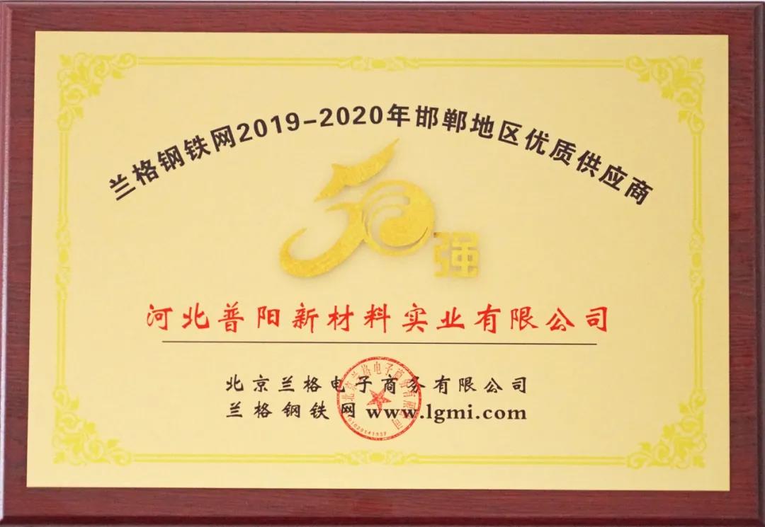 論壇對邯鄲地區(qū)優(yōu)質(zhì)供應商和鋼鐵流通行業(yè)卓越領(lǐng)軍人物進行了表彰,河北普陽新材料實業(yè)有限公司榮獲“蘭格鋼鐵網(wǎng)2019-2020年邯鄲地區(qū)優(yōu)質(zhì)供應商50強”榮譽稱號,總經(jīng)理劉超當選“蘭格鋼鐵網(wǎng)2020年度邯鄲地區(qū)鋼鐵流通行業(yè)卓越領(lǐng)軍人物”。