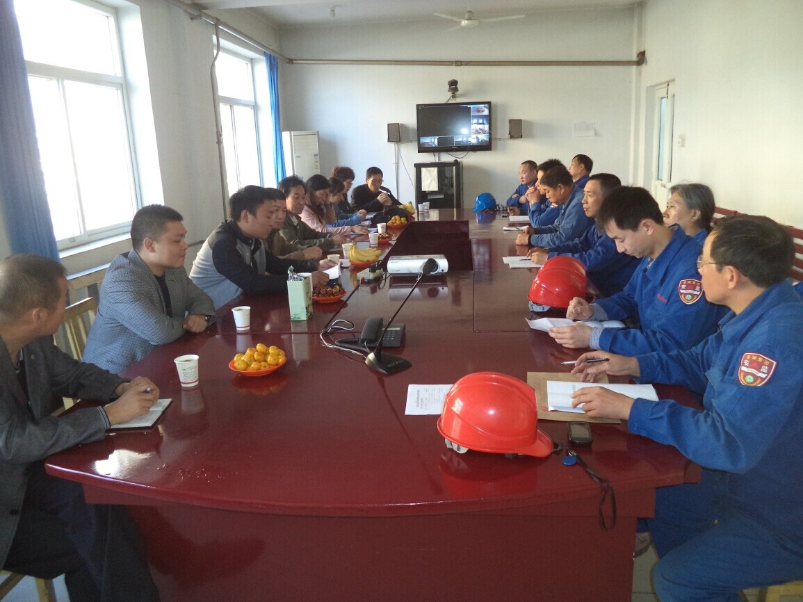1014日,武安市安監(jiān)局地面科柴秀生、李愛功、郭建學帶領(lǐng)河北科防冶金安全評價有限公司、河北民泰安全評價有限公司、河北朝陽安全評價有限公司等靳起棟、劉巨猛等評價專家對焦化廠危險化學品罐區(qū)進行了專項檢查。圖為公司安監(jiān)部和焦化廠安全科相關(guān)人員,在焦化廠會議室與各位專家進行交流。