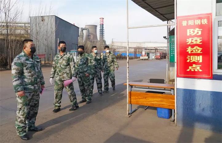 按照集團疫情防控領導小組部署,普陽民兵連在13個門崗設立“防疫檢測點”,對職工進行崗前體溫檢測和記錄,并建立體溫登記檔案。同時,為來自天南海北的貨運司機提供口罩,全部車輛內外消毒,向進出人員宣傳新冠肺炎防控要點。此外,還全力做好高危人群梳理,對于從疫區(qū)來的司機、客戶,結合陽邑鎮(zhèn)疫情防控辦進行妥善安置。協助工程部對外來施工人員進行疫情排查,測體溫、填檔案,一馬當先。