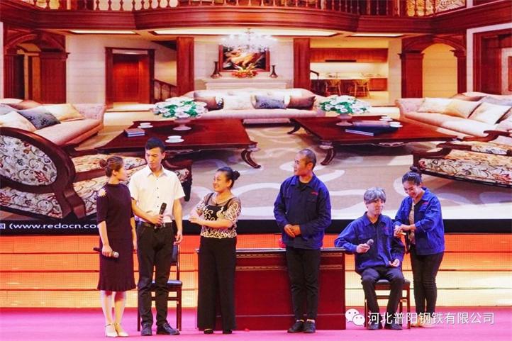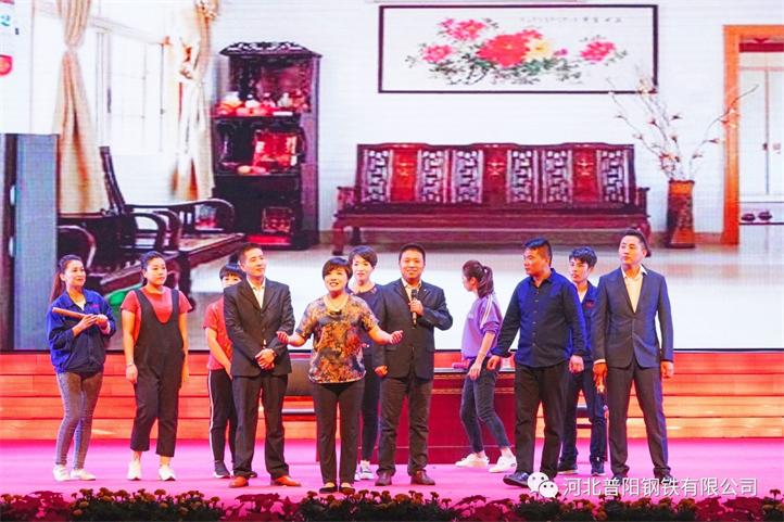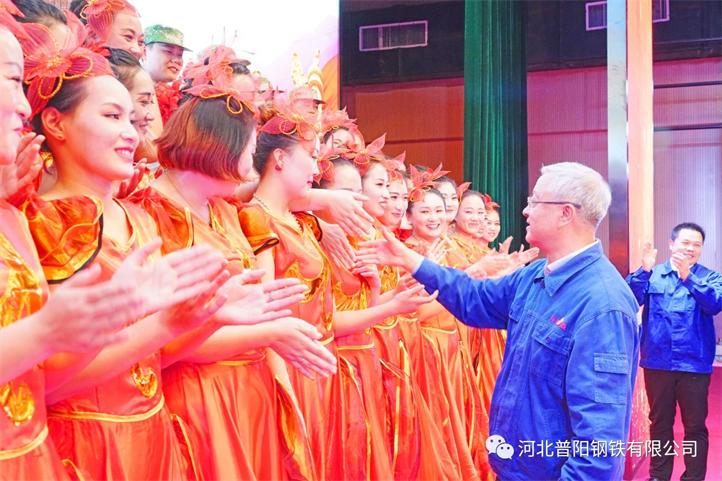 由普陽人自編自演的歌伴舞、啞劇、小品、朗誦等節(jié)目,通過演員們激情的表演,表現(xiàn)的淋漓盡致,展現(xiàn)出了社會(huì)主義新時(shí)代的幸福場景,也表達(dá)了普陽人對祖國的熱愛。由全體演職人員共同高歌的《普陽之歌》,把晚會(huì)推向了高潮,隨后,陽邑鎮(zhèn)領(lǐng)導(dǎo)和公司領(lǐng)導(dǎo)上臺與演職人員合影,董事長郭恩元與演員們親切握手。