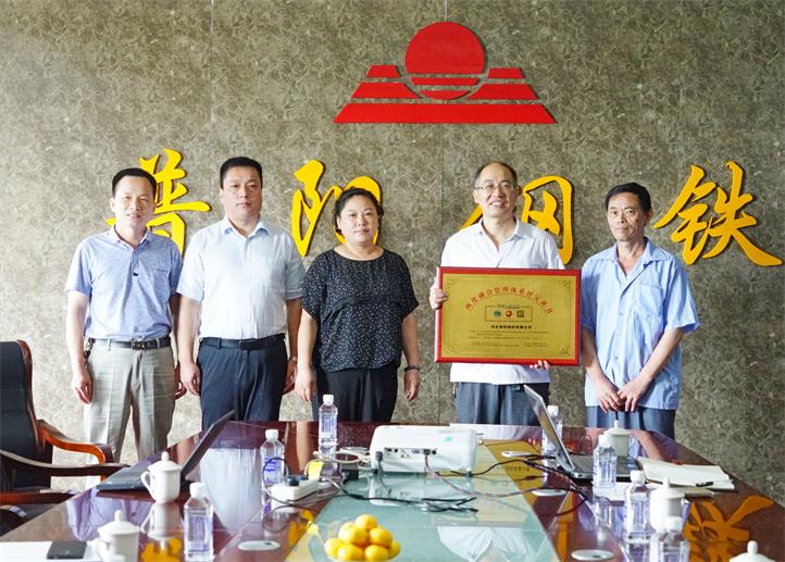8月6日,武安市工信局張秀娟局長(zhǎng)、馬學(xué)軍科長(zhǎng)以及中國(guó)船級(jí)社河北分公司總經(jīng)理賈冰濤、體系總監(jiān)程明明一行7人到我公司指導(dǎo)兩化融合貫標(biāo)工作,并為我公司頒發(fā)了兩化融合體系貫標(biāo)證書(shū)和獎(jiǎng)牌。公司總經(jīng)理助理石現(xiàn)英、副總經(jīng)理張連所、信息自動(dòng)化部長(zhǎng)?,F(xiàn)利、技術(shù)部長(zhǎng)鄭磊等相關(guān)負(fù)責(zé)人參加了授牌頒證儀式。